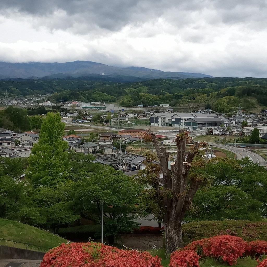 ◇コスモタワーのある公園より.前日に雨が降ったので山が深緑色でよく見えました.左が臼田(うすだ)宇宙観測所,右の斜めになってるのが美笹の観測所です.◆この日は,臼田のパラボラアンテナが直角になってました.小説の題名は,この見た目から付けましたが…どうでしょう,まるで「飾られた絵皿」のように見えませんか…?5月なのでツツジが見頃でした.