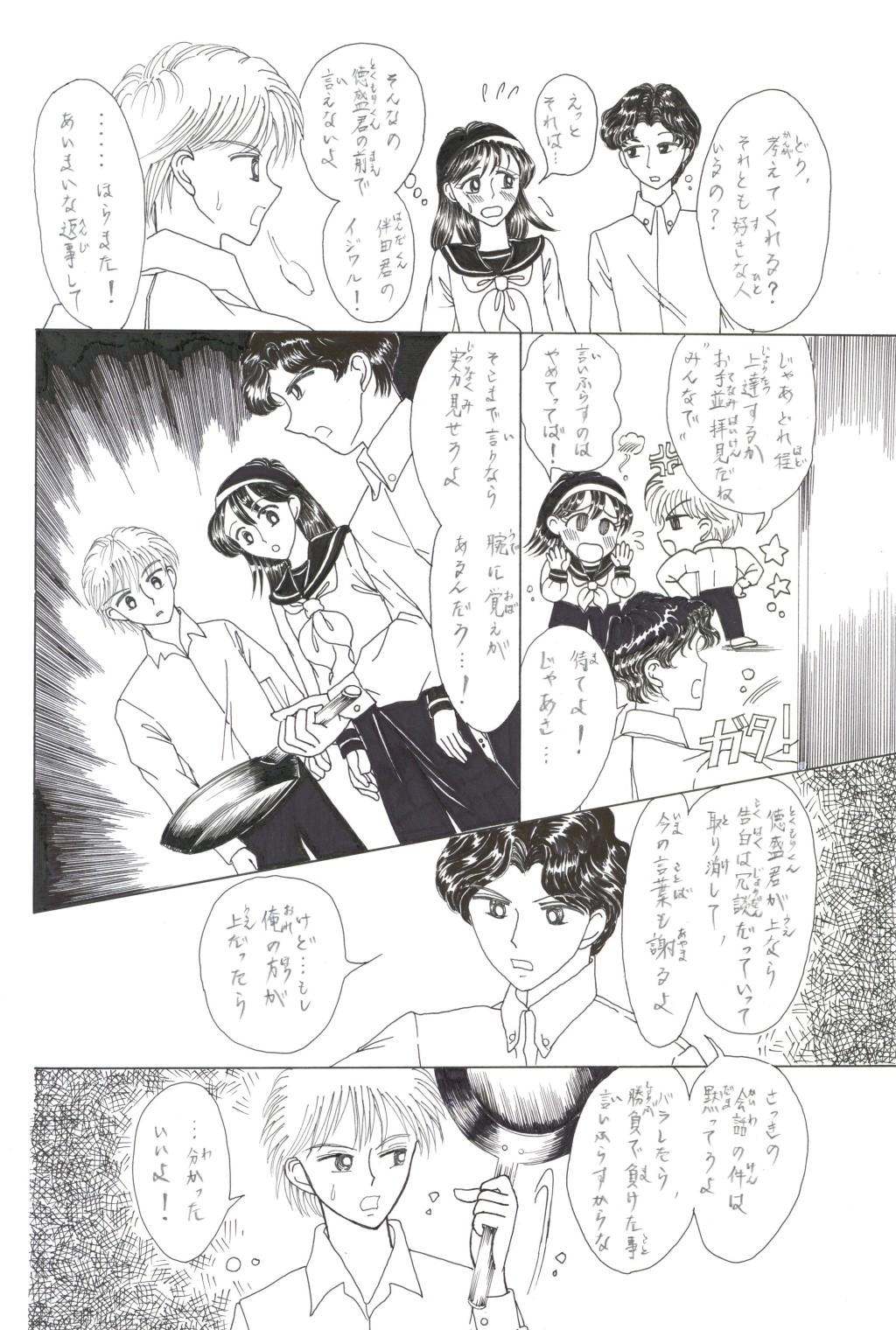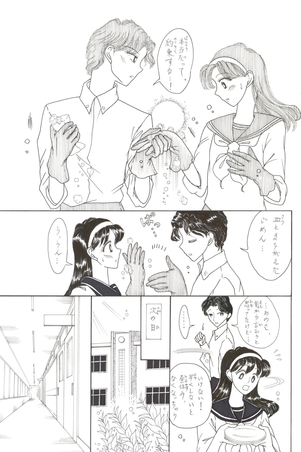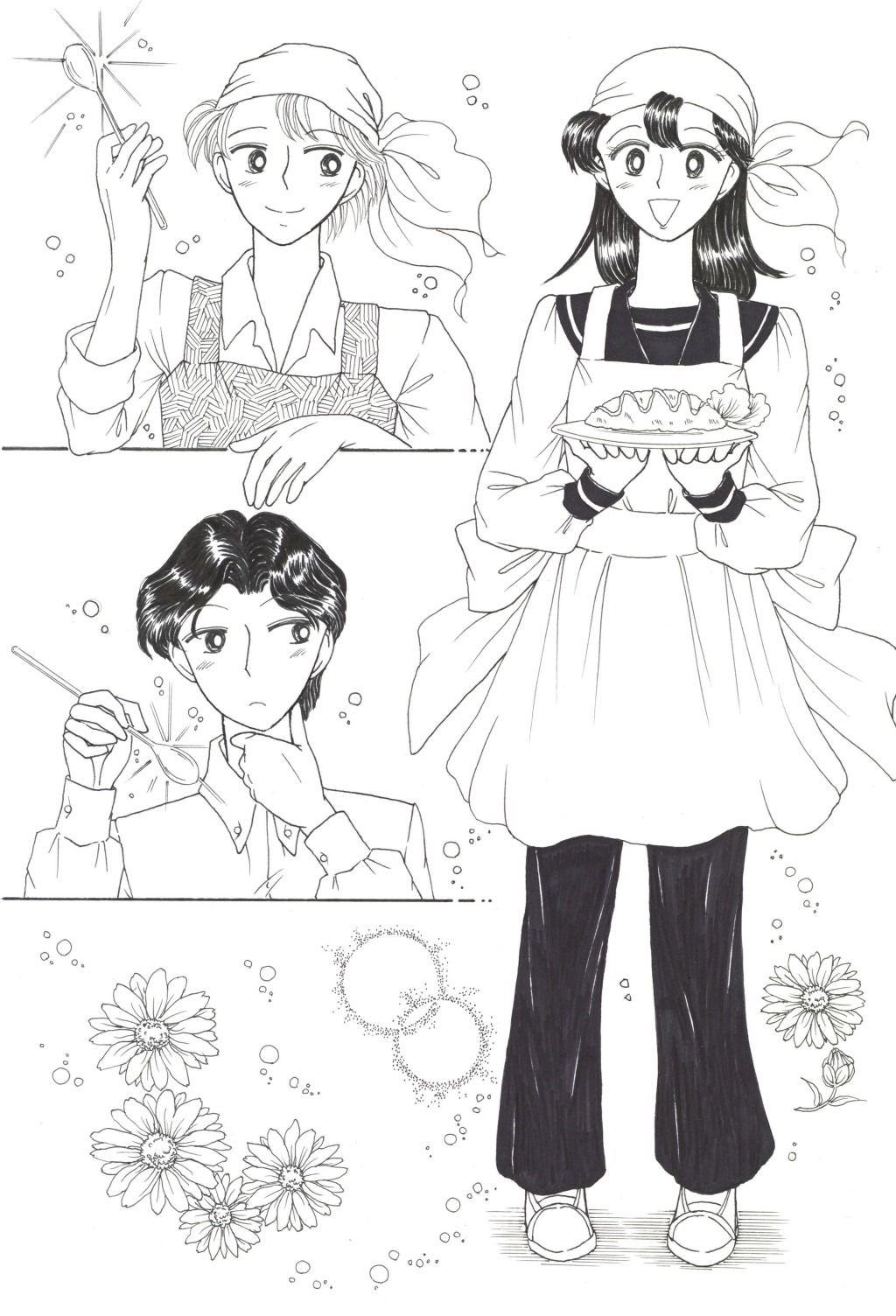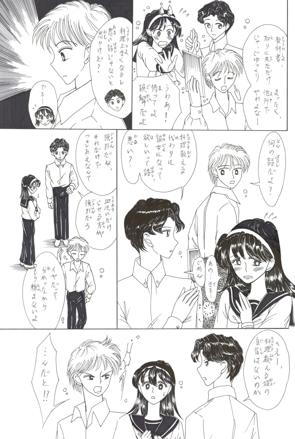 ◆中学2年の「稲穂(いなほ)さん」は,家庭科の「調理」が大の苦手.そんな時,片思いの「徳盛(とくもり)君」が得意の料理でオムレツを作ってくれる.補習を免(まぬが)れた見返りとして頼まれた皿洗いを,喜(よろこ)んで引き受うける稲穂.しかしそれを見た学級長(ルームちょう)「伴田(はんだ)君」は翌日,徳盛君を注意する.稲穂が伴田君に告げ口をして,咎(とが)めさせたのだと誤解(ごかい)されてしまい….